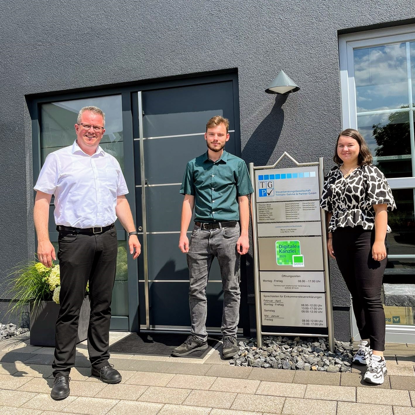 Christian Hins hat als zuständiger Geschäftsführer am 01.08.2022 unsere beiden Auszubildenden Jürgen Dieser und Sara Zeciri begrüßt und ihnen sowohl alle Mitarbeiter als auch die Räumlichkeiten unserer Kanzlei vorgestellt.
