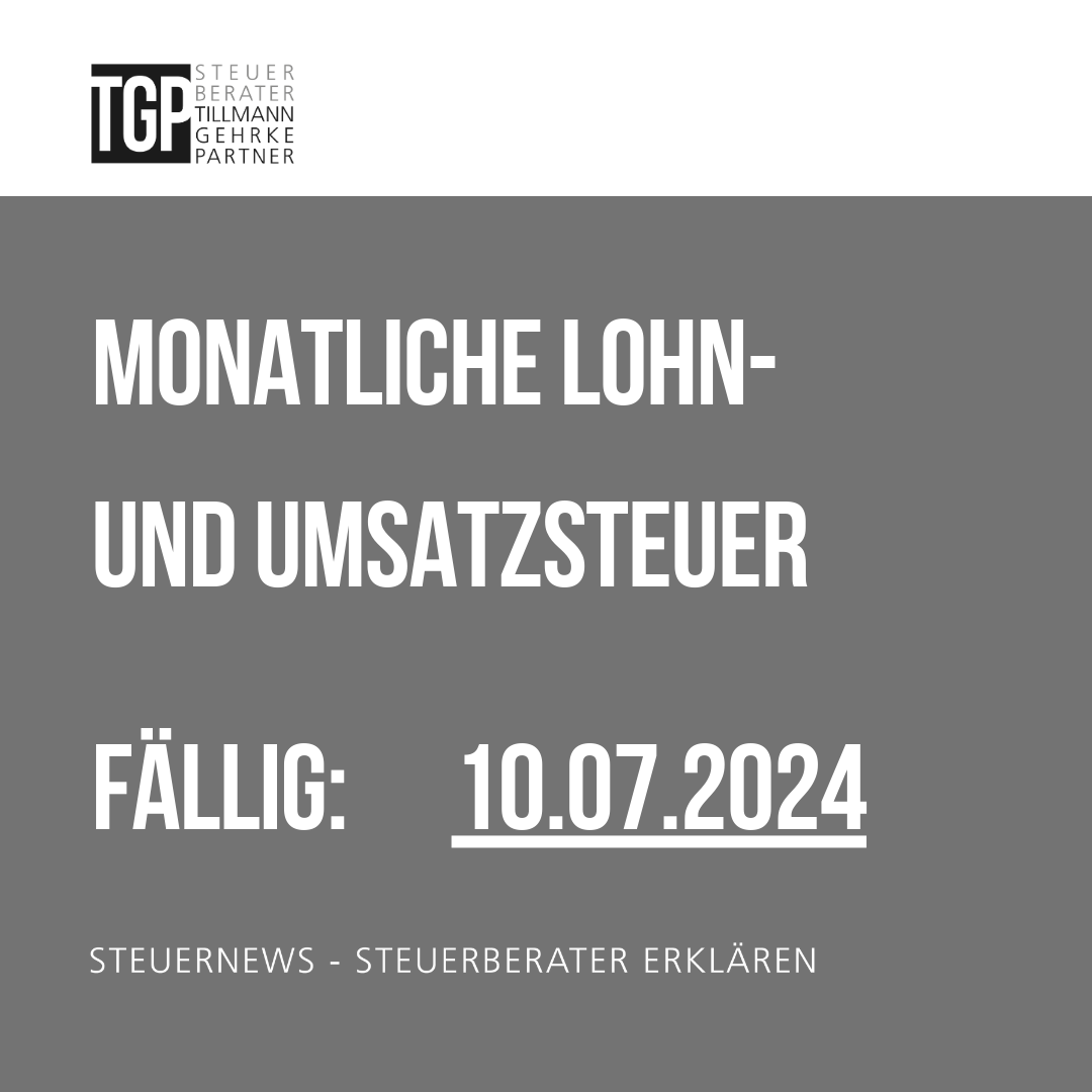 Bitte beachten Sie die Fälligkeitstermine für Juli 2024:
