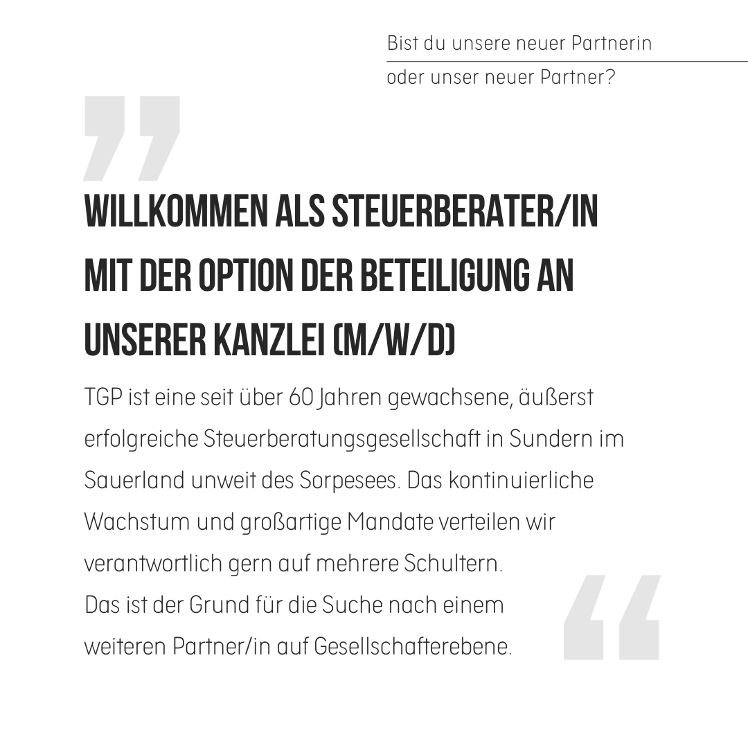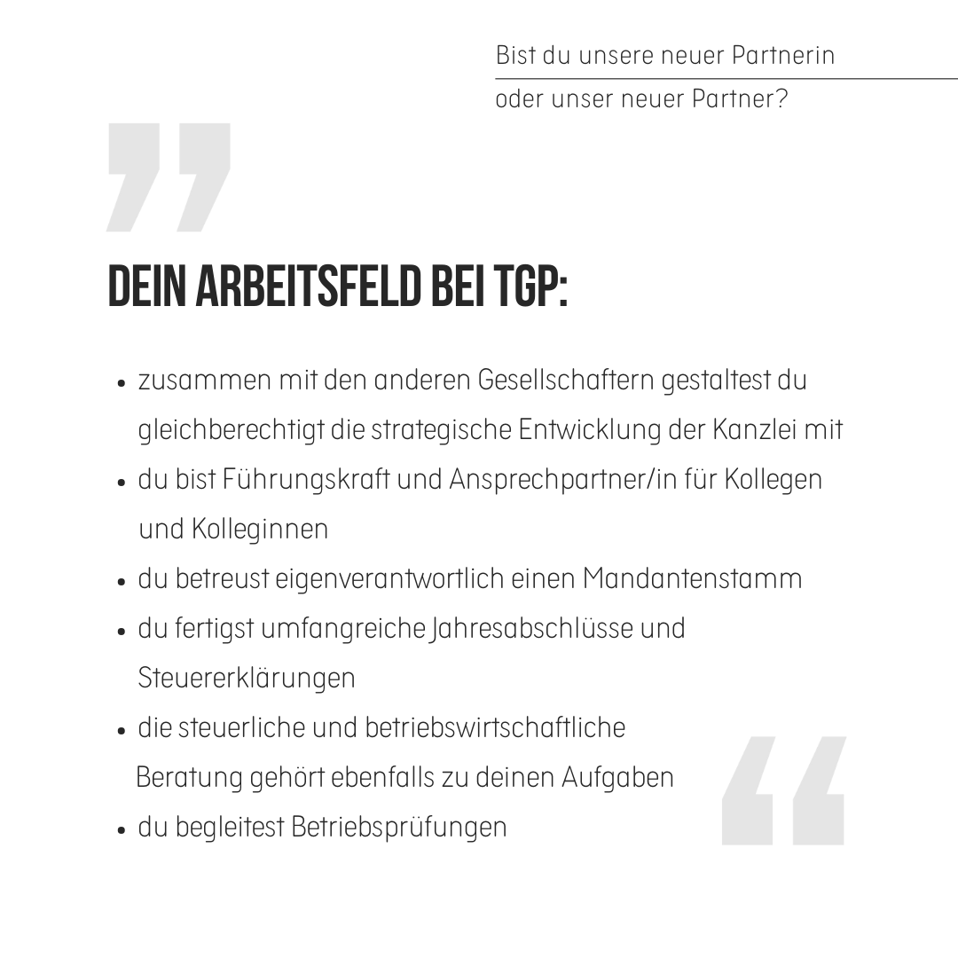 Neue/r Partner/in - Neue/r Steuerberater/in