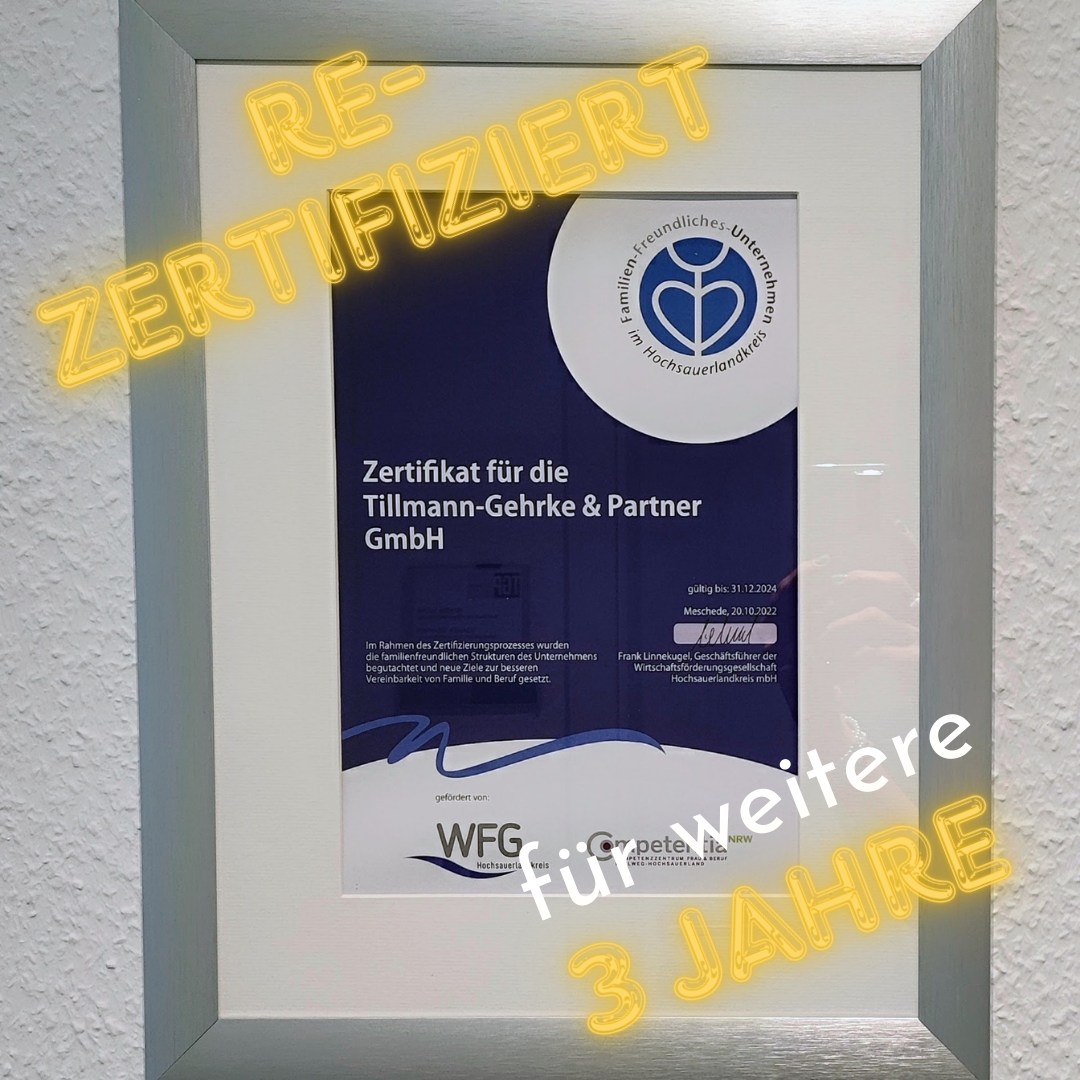 Der Hochsauerlandkreis hat uns die Re-Zertifizierung zum Familienfreundlichen Unternehmen im Mai bestätigt.