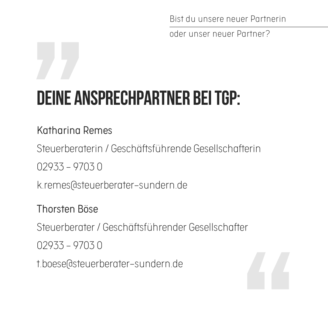 Neue/r Partner/in - Neue/r Steuerberater/in