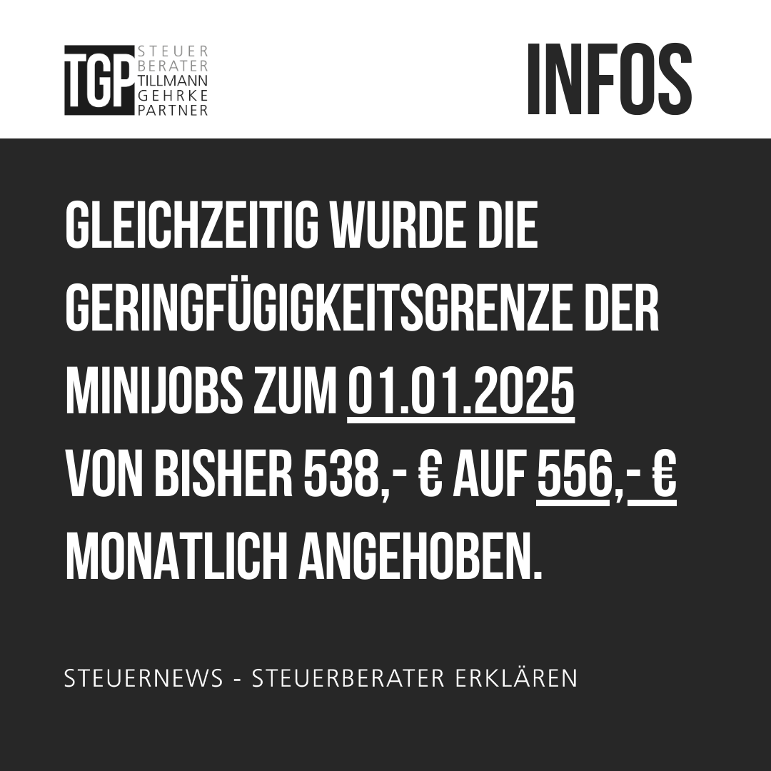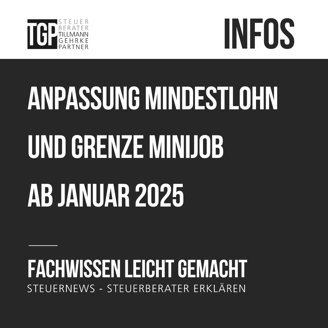 Ab dem 01.01.2025 tritt der neue Mindestlohn in Kraft! Auch die Minijob Grenze wurde gleichzeitig angehoben.